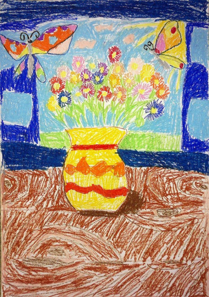 Описание: Рисунок Серегиной Кристины, 7 лет. Масляная пастель.