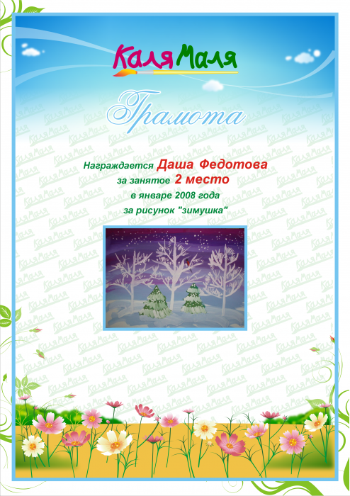 © Каля Маля, 2007-2025 / Карта сайтаПри использовании материалов сайта прямая ссылка на сайт обязательна.При использовании рисунков с сайта разрешение автора обязательно.
