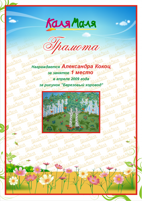 Грамота выдана пользователю karalka