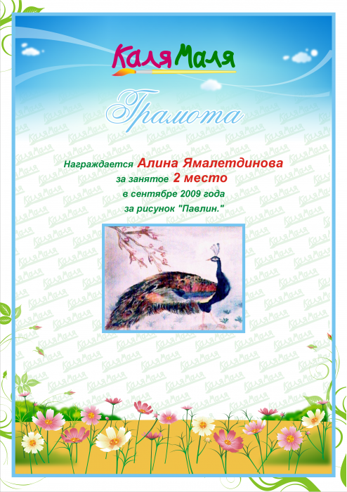 Грамота выдана пользователю Любовь