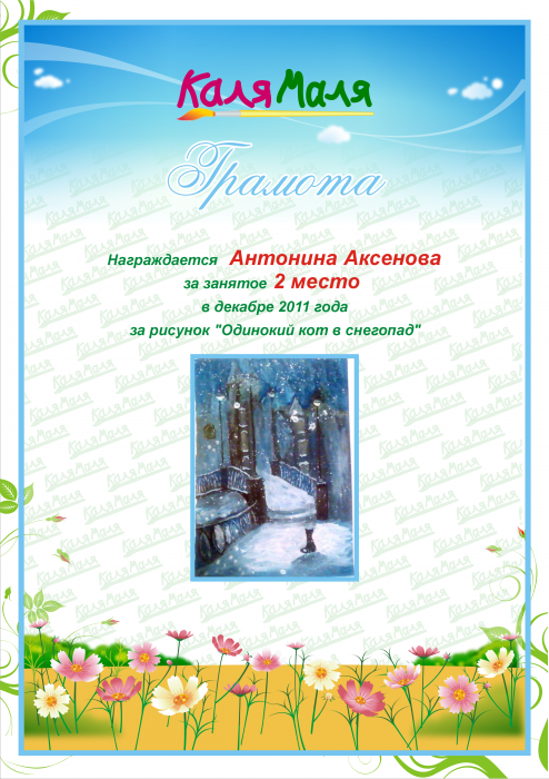 © Каля Маля, 2007-2025 / Карта сайтаПри использовании материалов сайта прямая ссылка на сайт обязательна.При использовании рисунков с сайта разрешение автора обязательно.