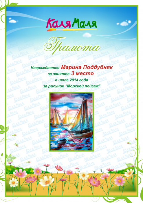 Грамота выдана пользователю marinka9797