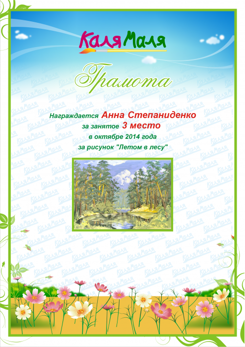 Грамота выдана пользователю МишинаТатьяна