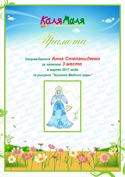 Грамота выдана пользователю МишинаТатьяна