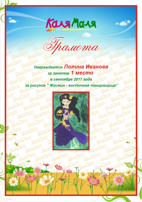 Грамота выдана пользователю Polinka_malinka
