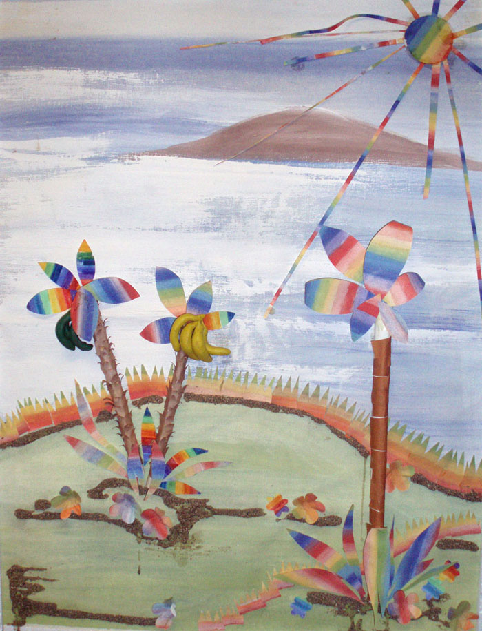 Рисунок: Африка Описание: Для выполнения работы использовались: бумага, песок, бананы, которые сделаны из пластилина.<br />Автор:Оберемко Лиза Автор: Lena&Nastya Категория: От 8-ми и старше Формат: 700x916 Опубликовано: 31.10.08 17:53 Просмотров: 26510 Голосов: 4 Голосов в этом месяце: 0 | Поиграть в пазлы (Сыграли: 8)