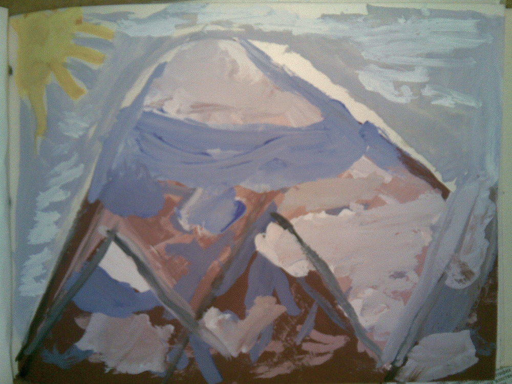 Описание: рисунок семилетней девочки после просмотра картинок освещенных гор