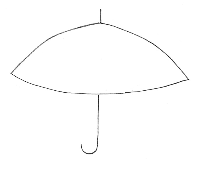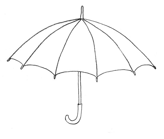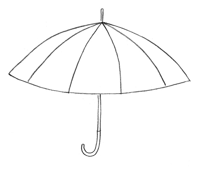 Зонтик хорошо защищает от дождя. У него длинная ручка. Разделим купол зонта на несколько частей и раскрасим разными цветами.