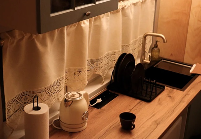В зимнее время глэмпинг может предложить комфортные теплые домики на двоих с панорамными окнами, откуда открывается красивейший вид на реку и заснеженные горы. В домиках для вас двуспальная кровать, проектор для просмотра интересных фильмов, на 100% обустроенная кухня и санузел с ванной на ножках – все для эффективного романтического отдыха.